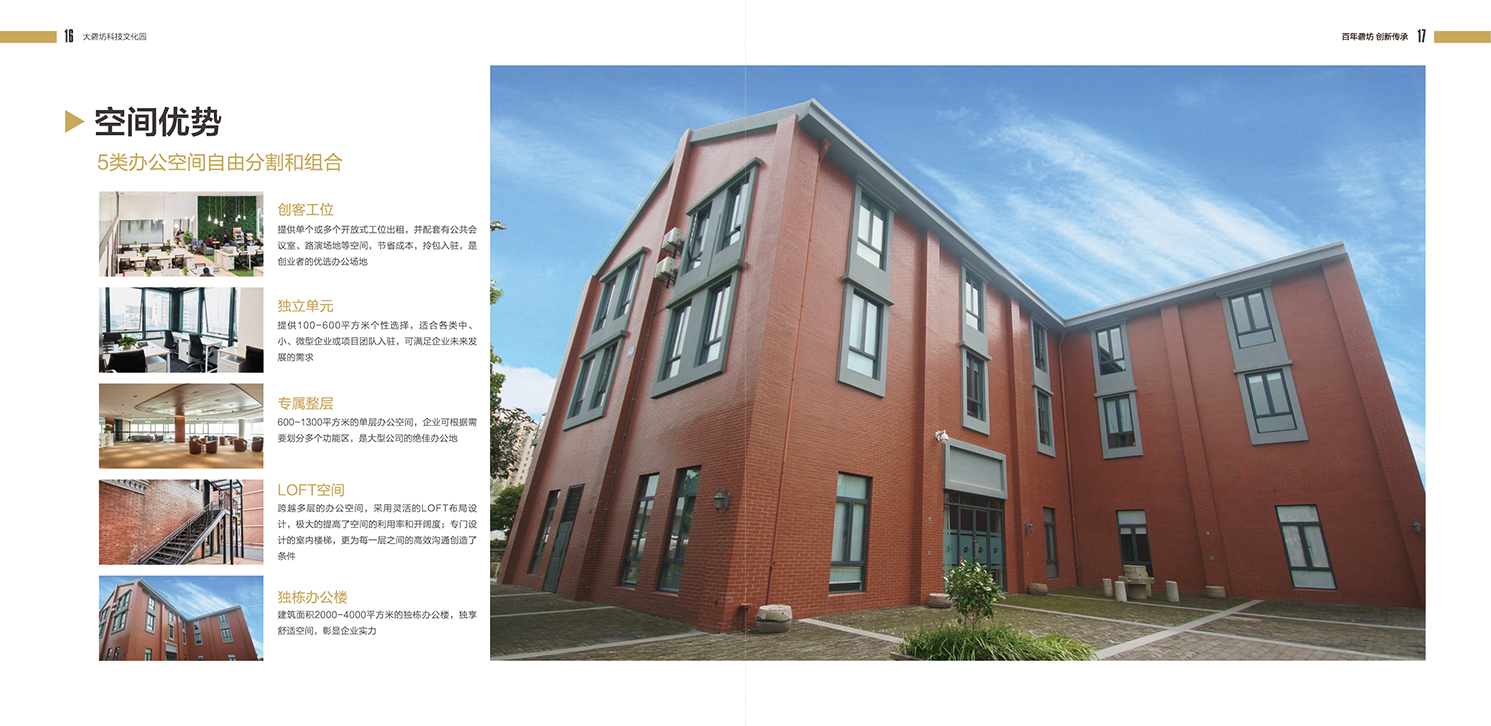 大礱坊占地面積26000平方米,建筑面積21000平方米,擁有8棟富有特色的廠房式的古建筑街區(qū)。大礱坊的辦公吧的租期可長可短,年租、月租、日租均可滿足,滿足小微企業(yè)向中小企業(yè)、大型企業(yè)提升的租賃要求。