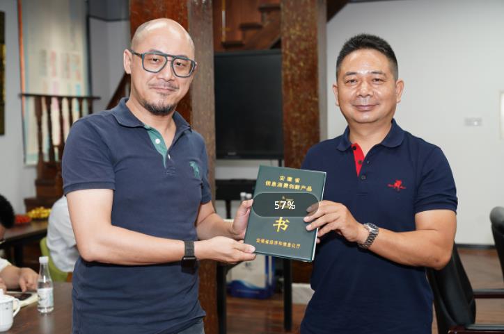 會議開始前,鏡湖區經信局局長方仲明向企業授予安徽省第七批信息消費創新產品證書。